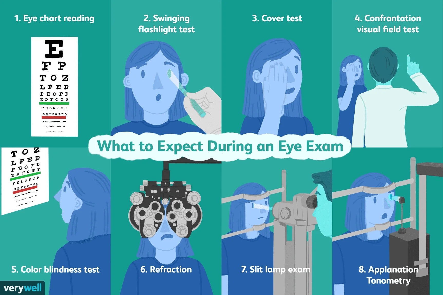 Eye exams detect routine vision problems such as nearsightedness, farsightedness and astigmatism.